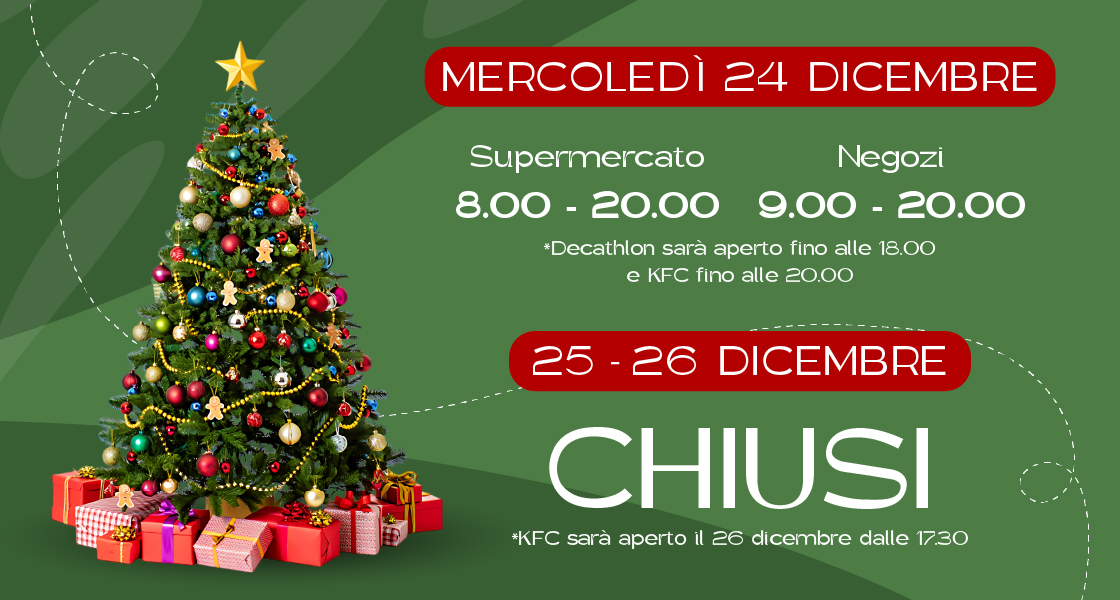 KFC: Lun-Gio 11:30 – 22:00 / Ven-Dom 11:30 – 24:00(Dopo le 20:30 l’accesso è dall’ingresso esterno)